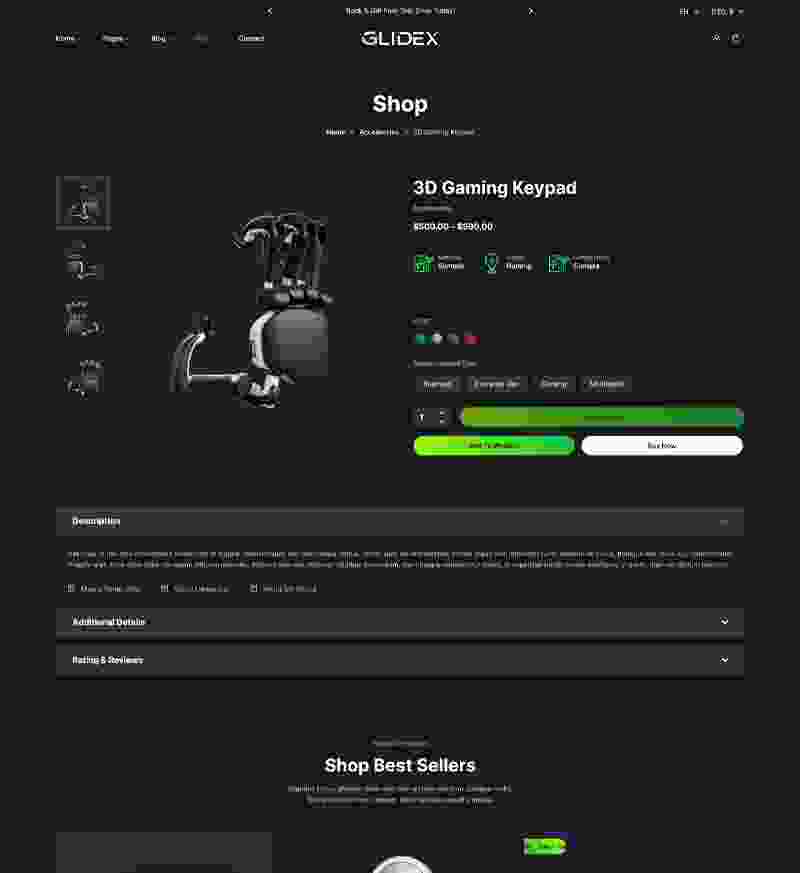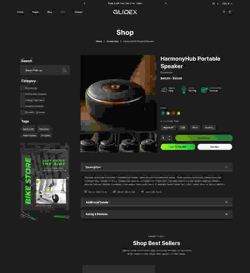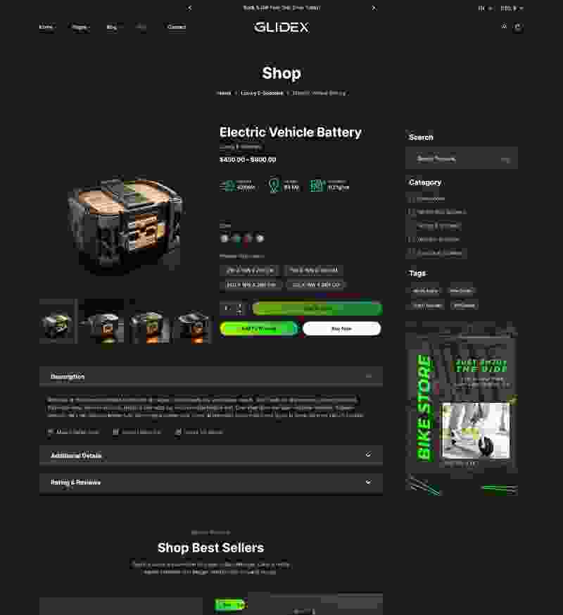 GlideX - Single Product WordPress Theme Single product shop, single product and blog, single product review to showcase single item shop, single store, create single marketing page website with single item homepage, single listing design.